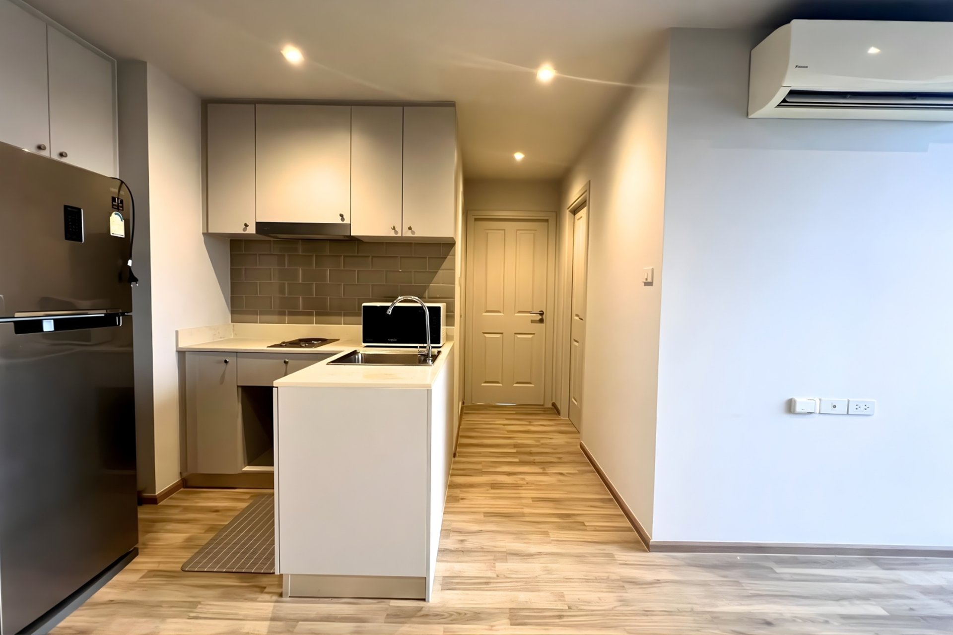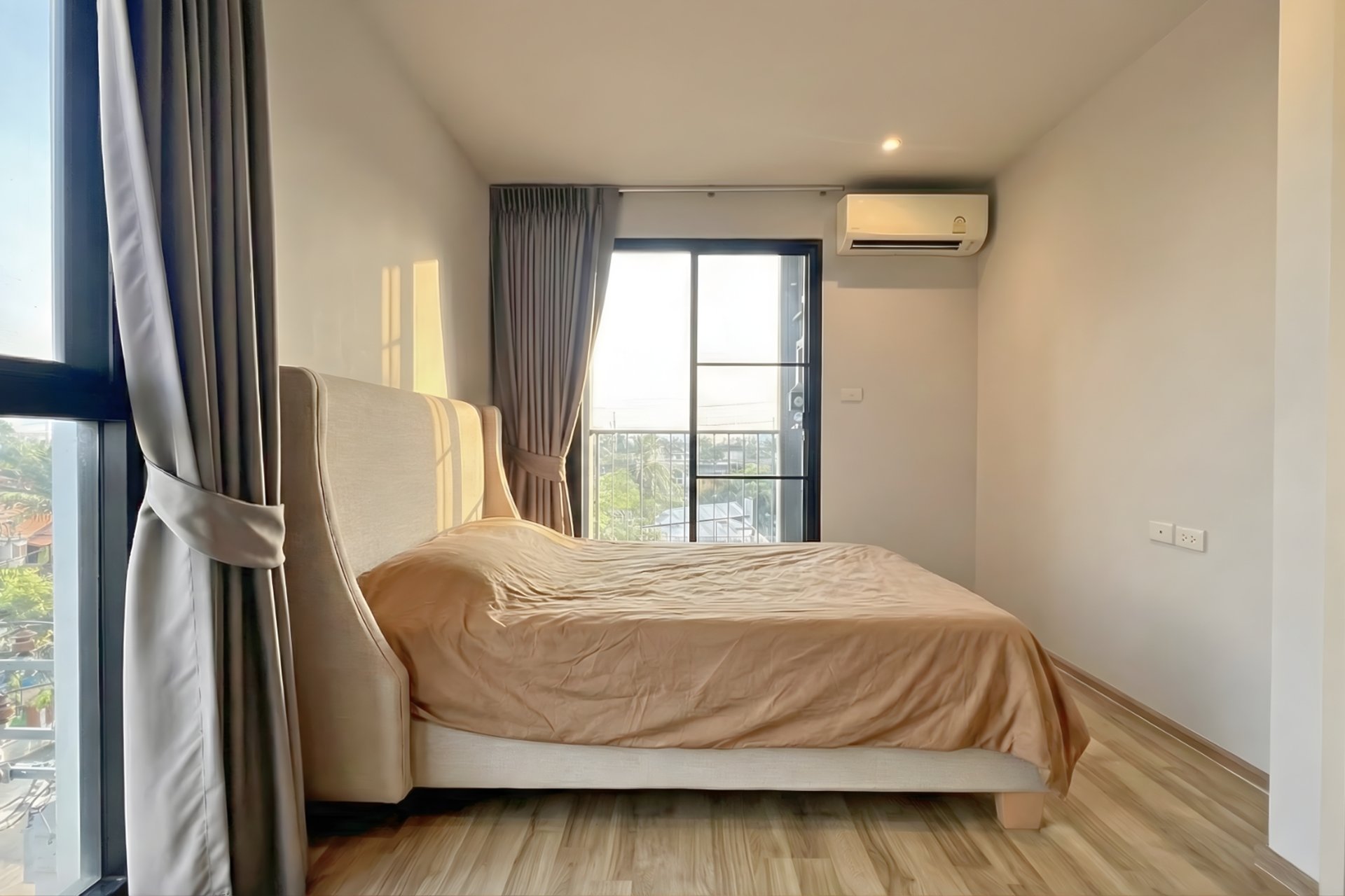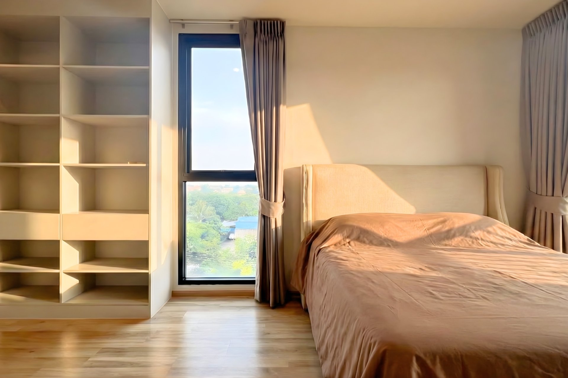 อีกสิ่งที่ผมชอบคือ Layout ห้องของที่นี่ครับ ทางโครงการเน้นการออกแบบห้องแบบ “หน้ากว้าง” ทำให้แสงธรรมชาติส่องเข้าถึงทั่วห้อง ห้องจึงดูโปร่ง โล่ง ไม่อึดอัด พื้นที่ใช้สอยถูกแบ่งสัดส่วนชัดเจนระหว่างห้องนั่งเล่นและห้องนอน ครัวมักจะเป็นครัวปิด (ตรวจสอบตาม Type ห้อง) ซึ่งเหมาะมากกับคนไทยที่ชอบทำอาหาร