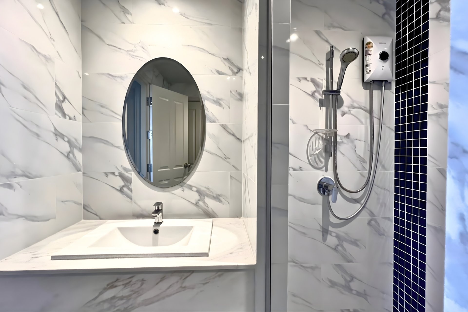 วัสดุที่ให้มาถือว่าเกรดดีเมื่อเทียบกับราคา (Value for Money) ไม่ว่าจะเป็นพื้น Digital Door Lock หรือสุขภัณฑ์ในห้องน้ำ