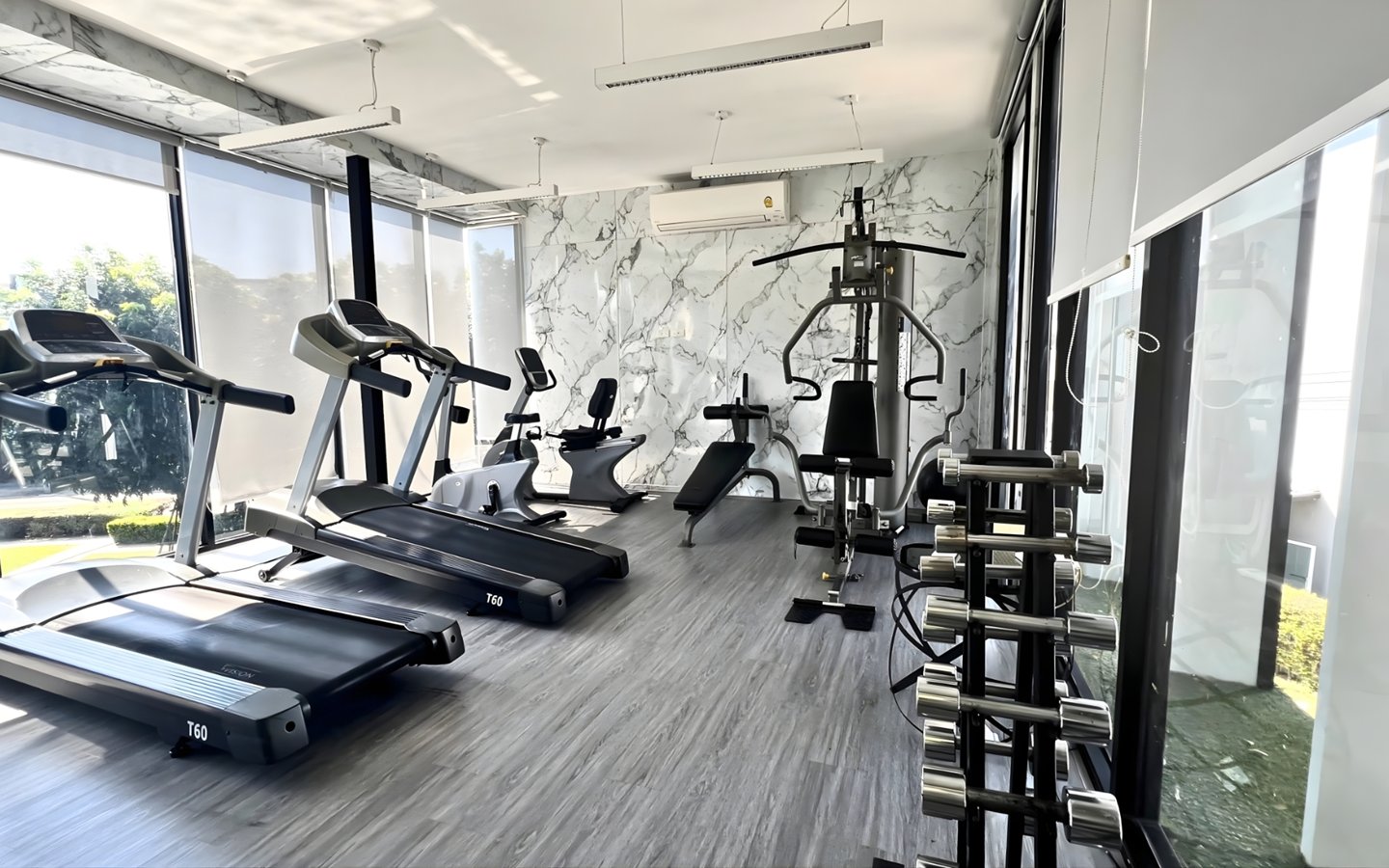- Fitness: อุปกรณ์ครบครัน วิวสระว่ายน้ำ